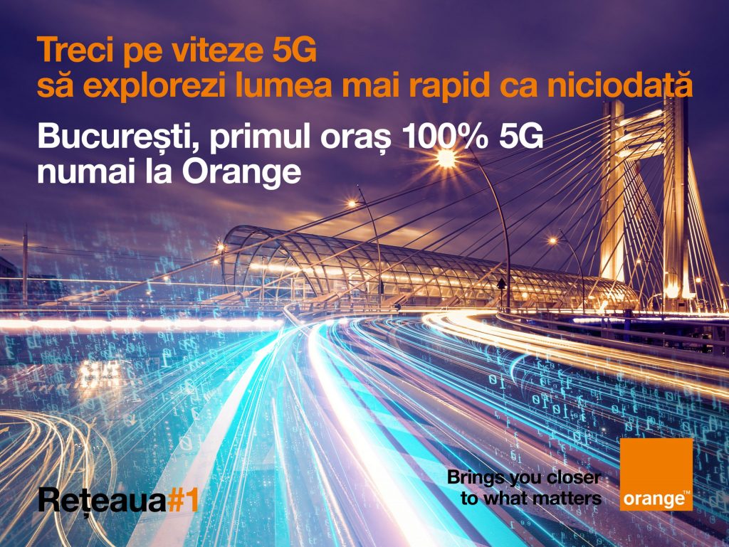 Clienţii Orange se pot bucura acum de conectivitate nelimitată şi acces la cea mai performantă reţea mobilă 5G, oriunde în Bucureşti. Capitala devine astfel primul oraş din România ce oferă conectivitate 5G pentru toţi locuitorii săi prin intermediul reţelei mobile Orange. Astfel, cei cu un abonament Orange 5G şi un telefon compatibil, vor beneficia de viteze maxime de download de până la 1.2Gbps.