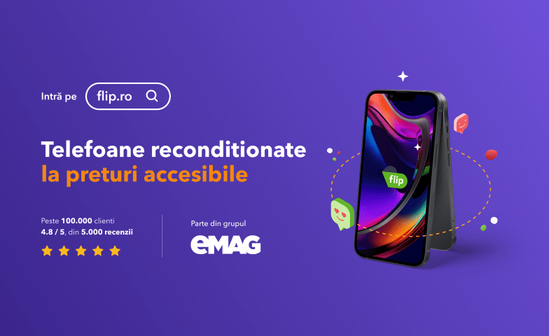 Marketplace-ul Flip le oferă utilizatorilor posibilitatea de a achiziționa telefoane smart recondiționate, cu 12 luni garanție și drept de retur, la prețuri accesibile, dar și de a-și vinde vechile telefoane online, într-un mod rapid și simplu.