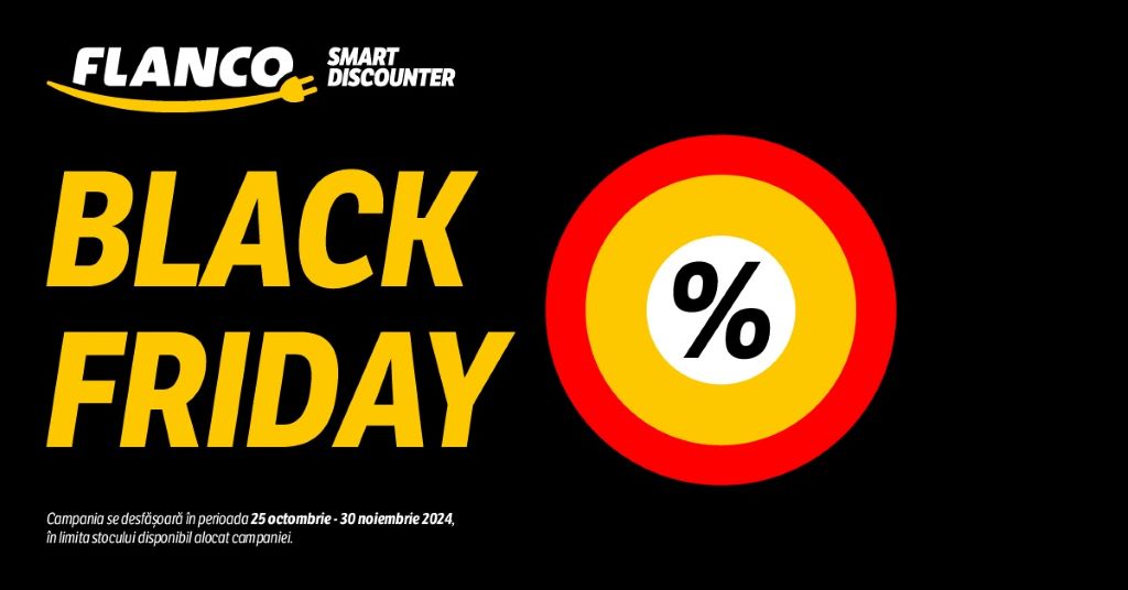 Flanco a dat startul celei de-a 14-a ediții de Black Friday. Retailerul a pregătit reduceri atractive la o gamă extinsă de produse, valabile în perioada 25 octombrie – 30 noiembrie, în toate cele 160 de magazine ale sale din țară, precum și online, pe flanco.ro.