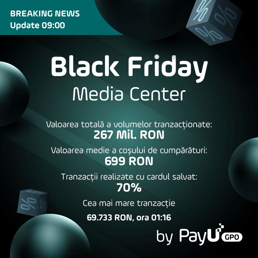 PayU GPO România prezintă în direct din Media Center-ul dedicat Black Friday informațiile cheie despre statistici și trenduri de consum în cea mai importantă zi din an pentru e-commerce-ul românesc.